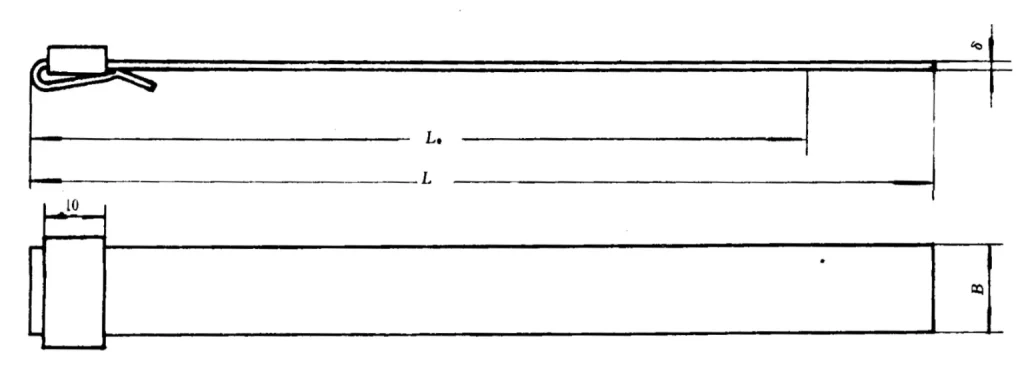 - 将试件放置于下图所示的负载试验机上,作热老化过程中的负载试验,使其承受“技术要求”中第11条——热老化要求的负荷值,并放置于温度90±2℃的烘箱内,历时240 h, 其间扎带不应断裂,锁紧装置不应松脱。