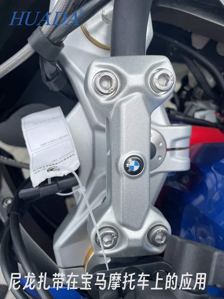 尼龙扎带在宝马摩托车上的应用尼龙扎带是一种实用又经济高效的绑扎工具,通常被用于整理和固定电线、电缆以及其他各种物品。它们的设计旨在快速固定或捆绑线缆和其他组件,从而保证设备内部组件的有序和安全。在摩托车行业,尼龙扎带的应用也..